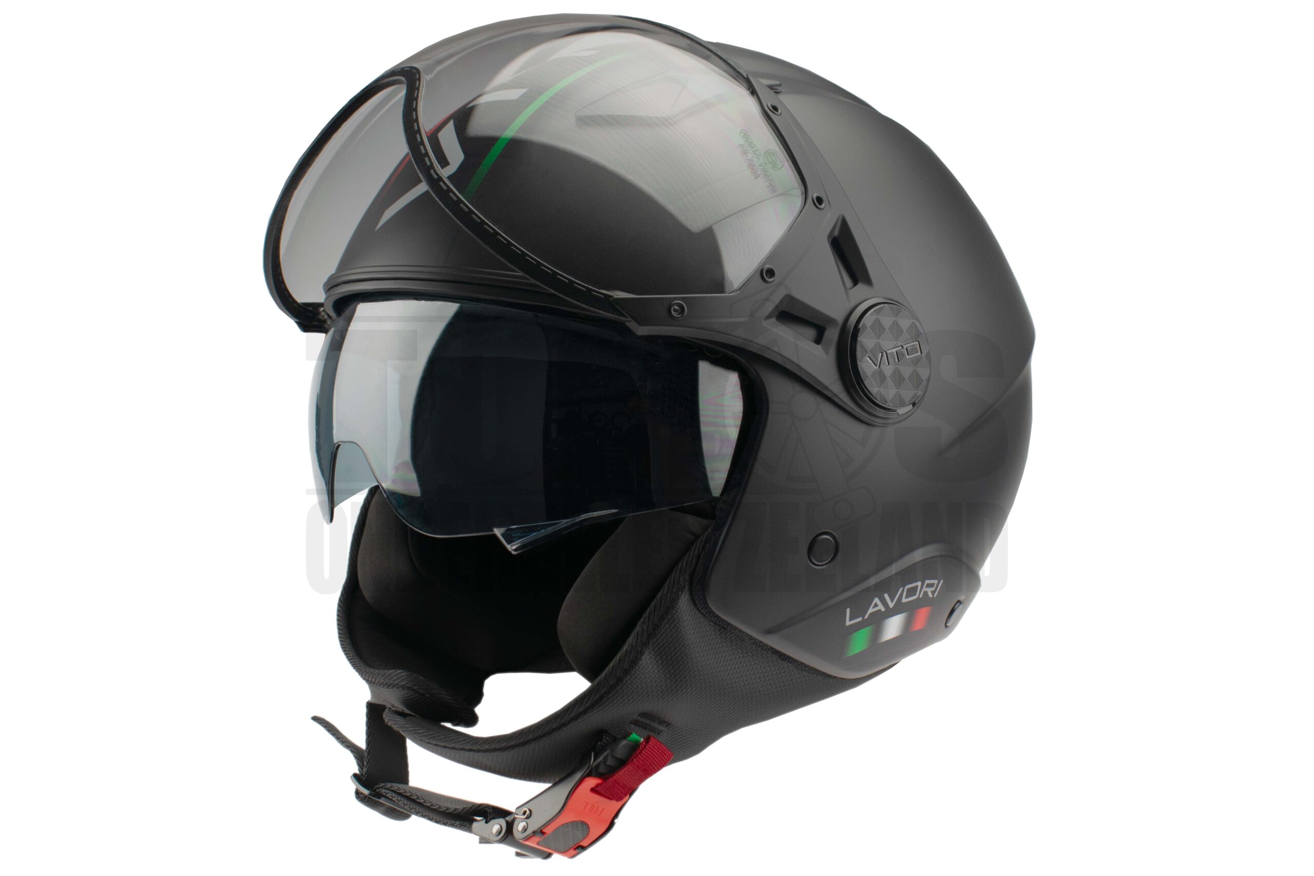 De Helm Vito Jethelm met Zonnevizier Lavori Fasion Mat Zwart. Volledige bescherming voor je hoofd en gezicht tijdens het rijden.