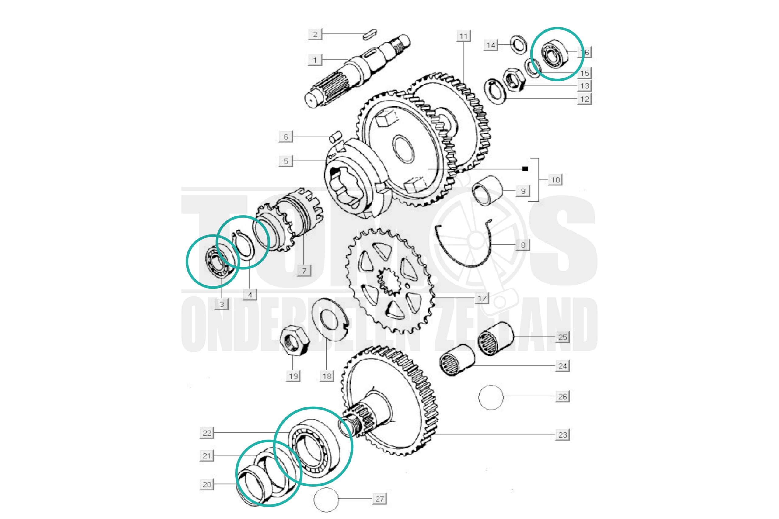 Hoofdas/tandwielen: