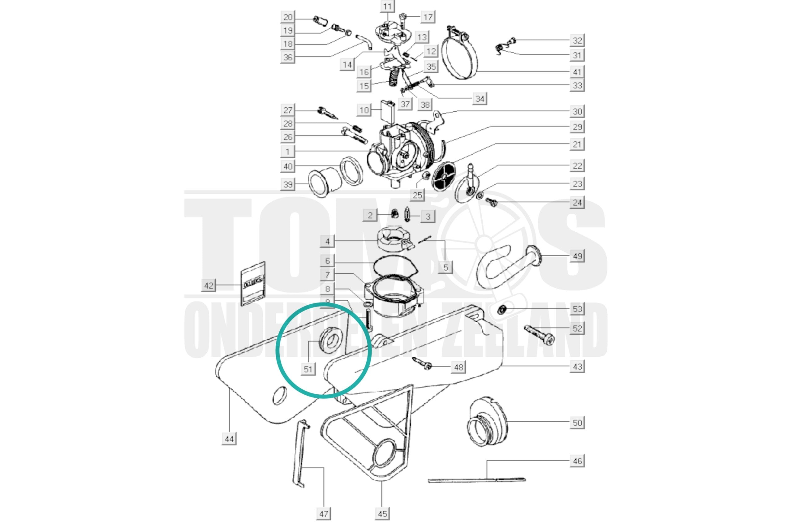 Tomos Doorvoerrubber frame voor luchtfilter