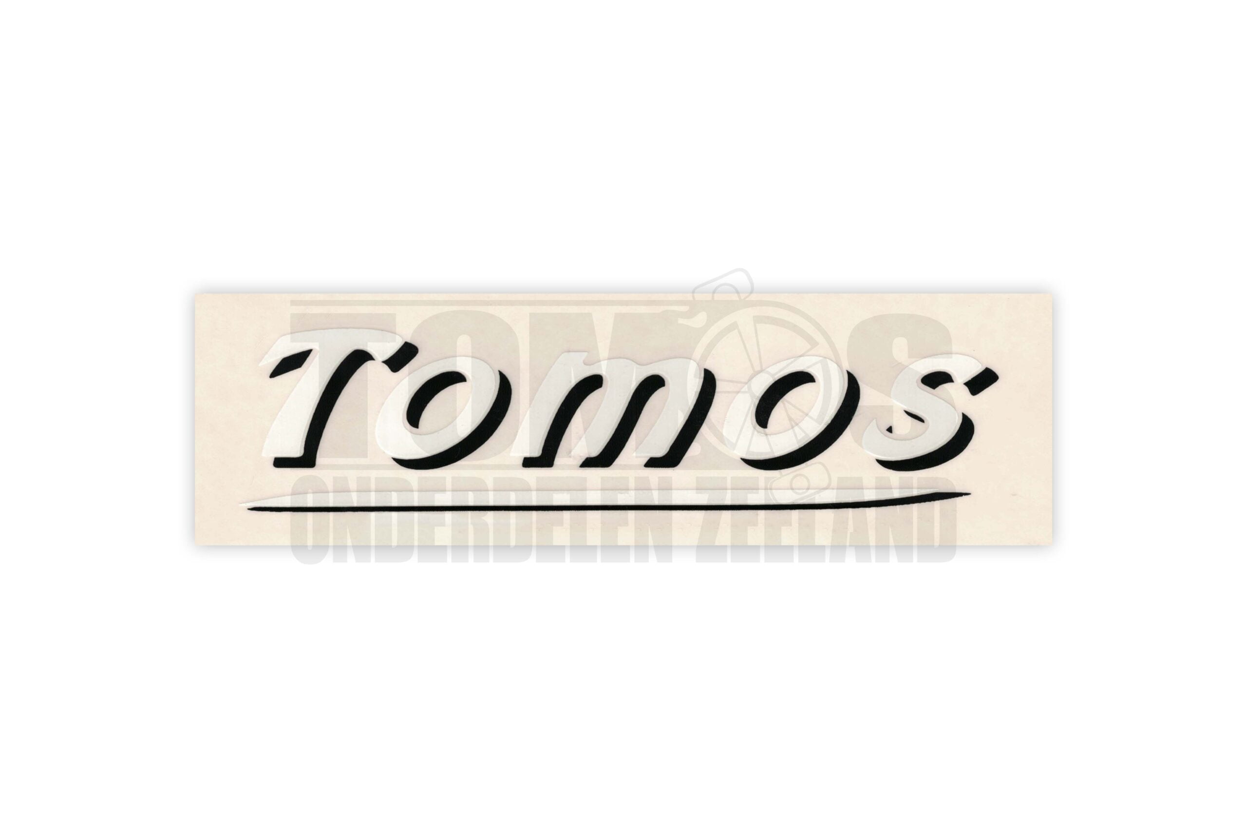Tomos Sticker Wit/Zwart 10.5x3cm – Voeg Stijl Toe aan je Bromfiets
