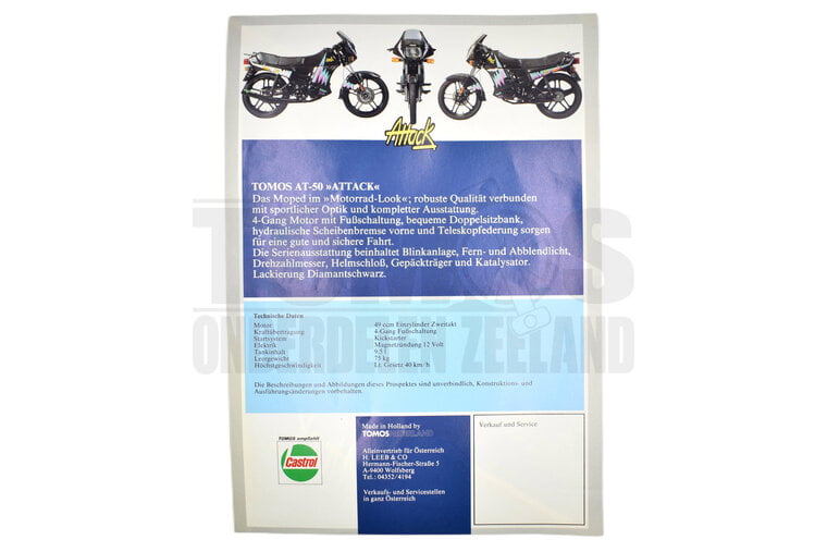 Zorg ervoor dat je Tomos AT50 Attack altijd de beste uitstraling heeft met de Tomos Stickerset AT50 Attack Compleet Origineel. Bestel vandaag nog en profiteer van een snelle levering, zodat je snel kunt genieten van een frisse look en optimale prestaties van je bromfiets!