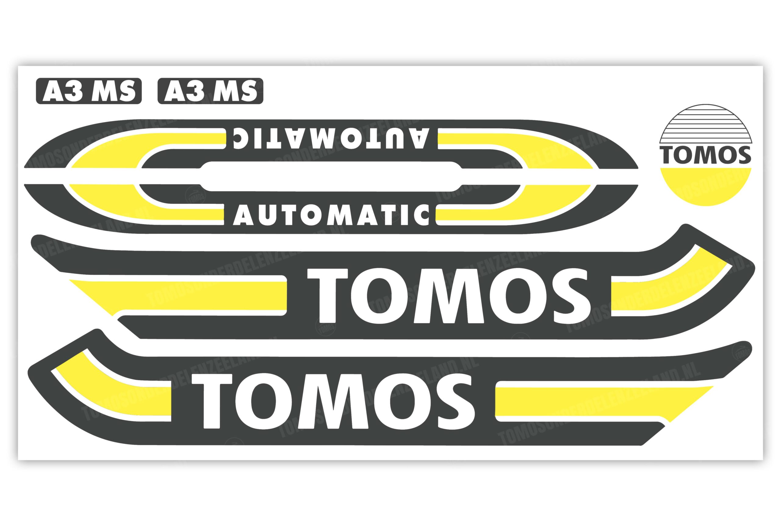 Tomos Stickerset Mat Standaard Automatic Zwart / Geel Compleet Set – Verbeter de Uiterlijk van je Bromfiets
